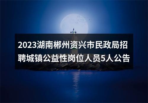 【2023湖南郴州资兴市民政局招聘城镇公益性岗位人员5人公告】相关岗位:
